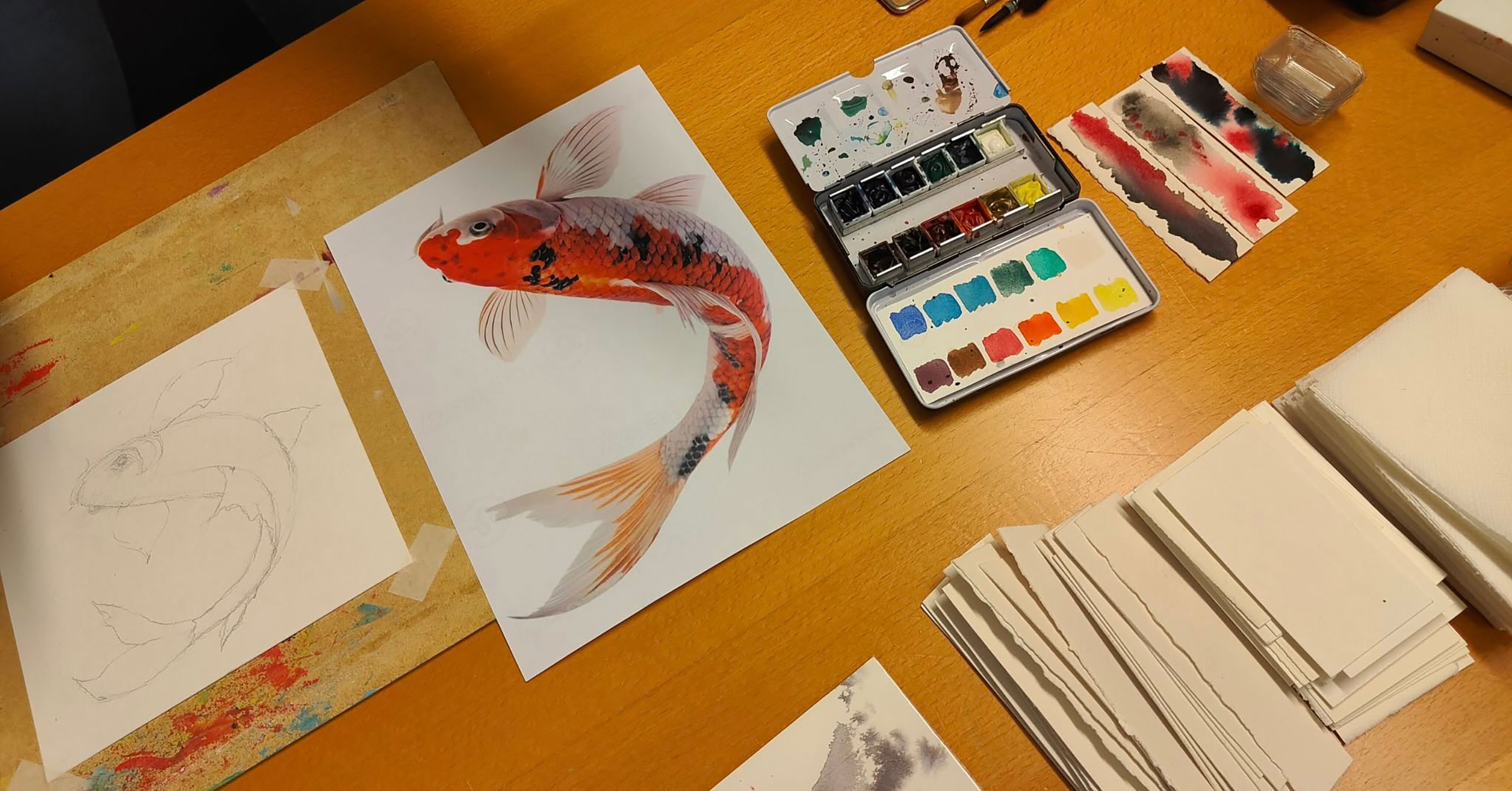 Акунуцца ў свет акварэлі і стварыце яркую, жывую карціну з танцуючымі рыбкамі! На майстар-класе вы навучыцеся перадаваць рух і энергію вады з дапамогай тэхнікі па-мокраму – спалучаючы акварэль і туш.